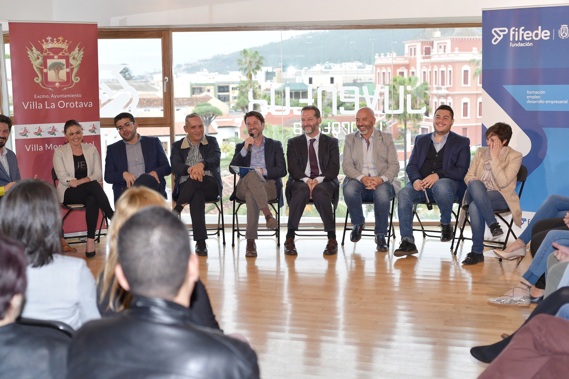 También estuvo presente en el acto el vicepresidente socioeconómica insular, Efraín Medina; el consejero de Empleo, Leopoldo Benjumea; el director de Relaciones Institucionales de Fundación Telefónica, Joan Cruz; el director de Telefónica en Canarias, Juan Flores; la responsable de Comunicación de las Lanzaderas en Fundación Santa María la Real, Soraya de las Sías; el concejal del Ayuntamiento de La Orotava, Eduardo Rodríguez; así como técnicos y participantes en el proyecto.