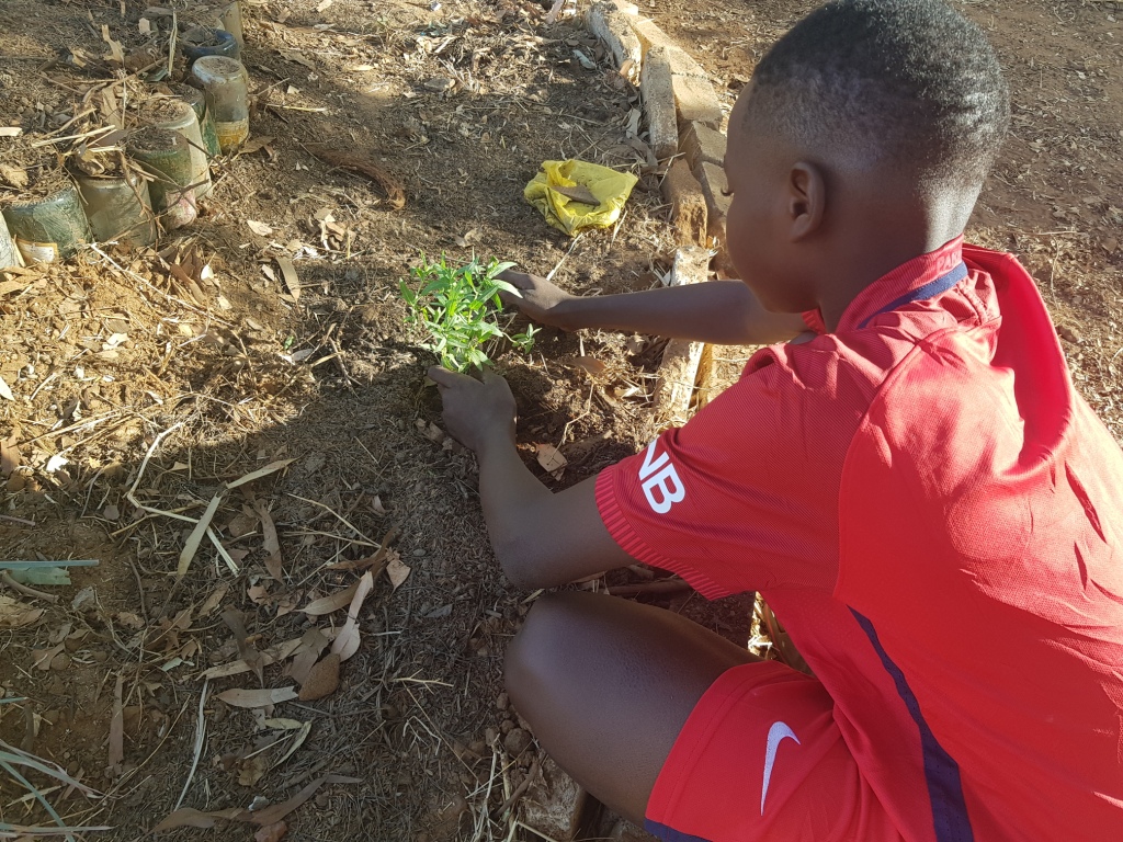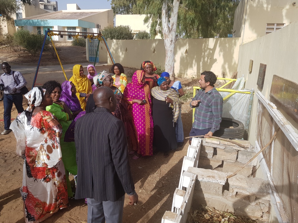 También se han construido seis bancales elevados en las casas usando técnicas de enriquecimiento de la tierra como el mulching o la lasaña, esto es, introducción por capas de materia orgánica (hojas, troncos o carbón). Las semillas usadas han sido traídas desde Tenerife, aportadas por la Red canaria de Semillas. Todo esto está siendo posible gracias a la participación de todos los niños y niñas, madres y tías, profesores, jardineros y demás habitantes de este privilegiado espacio de Dakar.